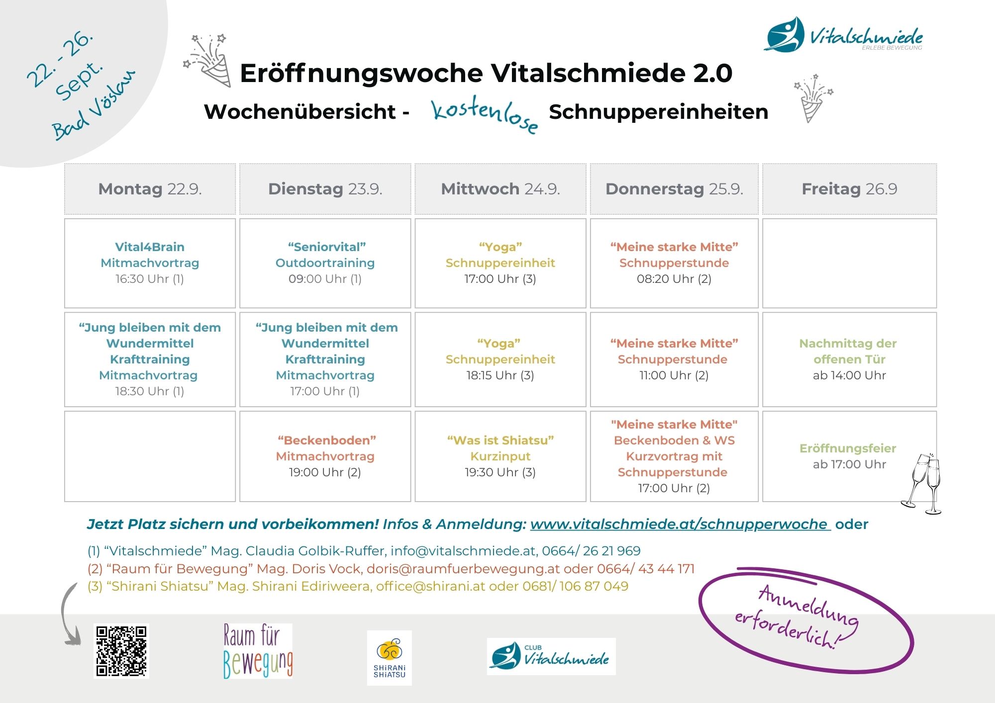 Infos und Anfragen: info@vitalschmiede.at oder 0664/2621969.
